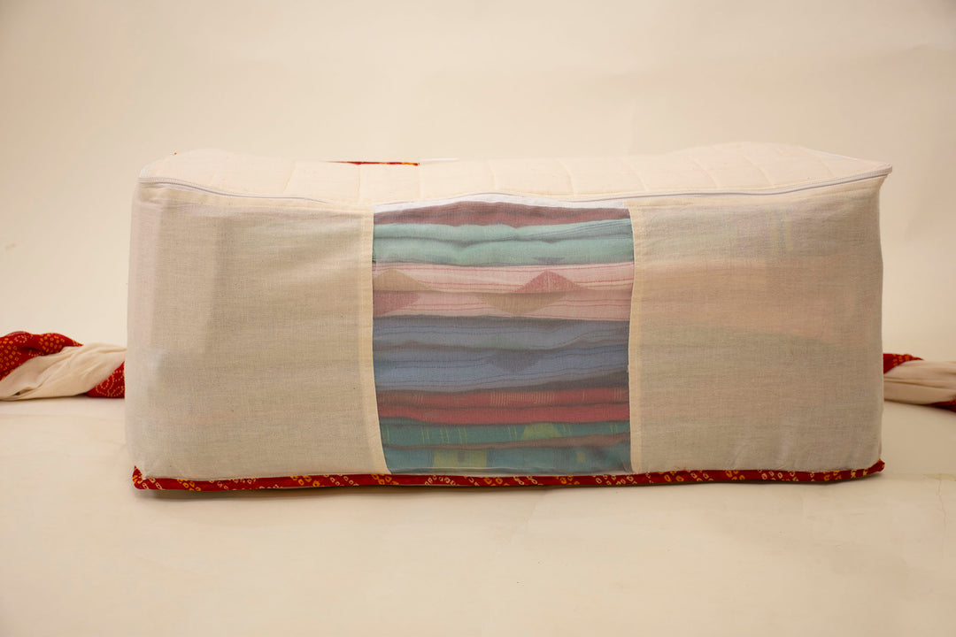 Cotton saree bags keep away dust and humidity away from sarees and are highly recommended for your Pure Silk Sarees like kanhiwarams, banarsis aur paithani.